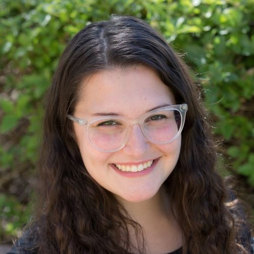 A late-teen Caucasian woman with a short asymmetrical haircut wearing glasses